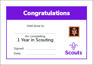 Below is a full set of year certificates which can be awarded each time a Scout gains a ‘Joining In’ award. These feature generic branding which allows them to be used by any section.