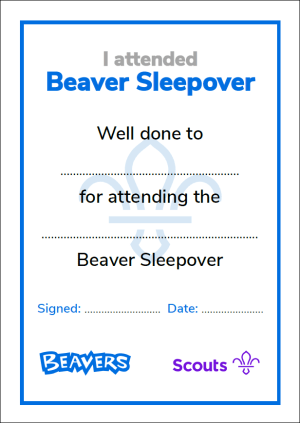 Sleepovers and Camps can be important memories in a Scout’s experience and some groups like to mark the occasion with a certificate. The certificates are A5 in size and arranged to fit 2 on a page.